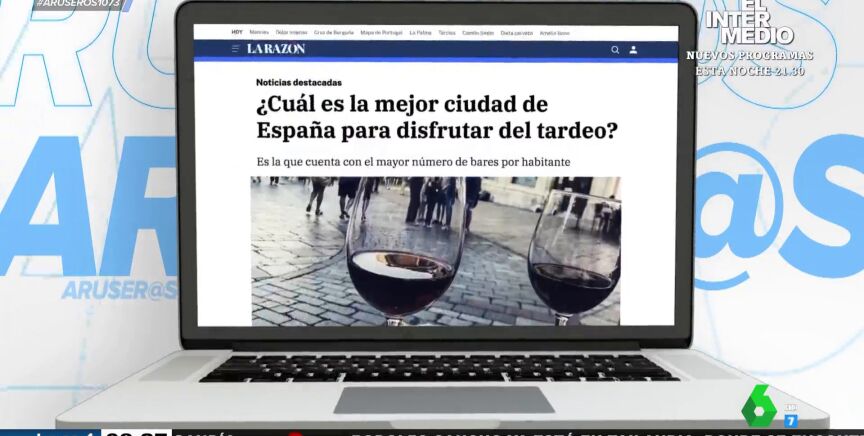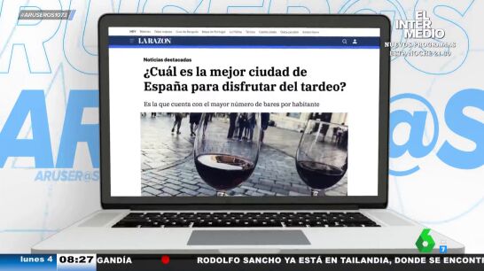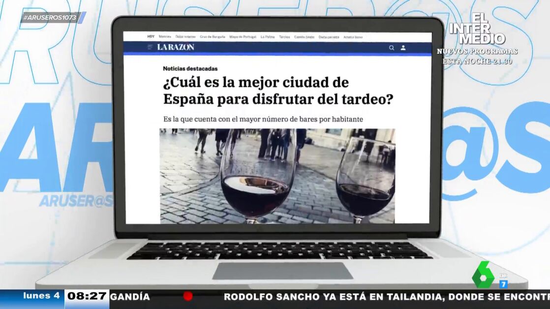 Alfonso Arús destaca en el plató de Aruser@s una noticia que publica 'La Razón' sobre cuál es la mejor ciudad para ir de 'tarde'. "Tiene que ser una con buena temperatura", destaca Marc Redondo antes de saber la respuesta. "No, una buena temperatura podría ser gélida que te invita a meterte en un bar", destaca Alfonso Arús, que afirma que cada uno "apostará por su propia ciudad".