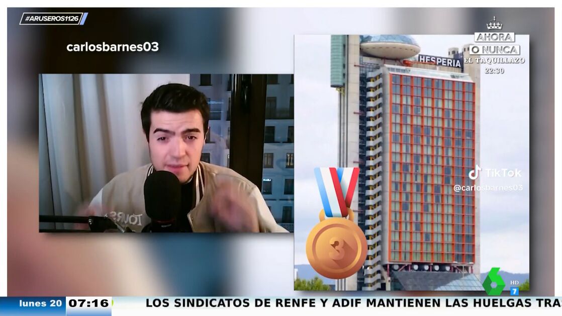 El tiktoker Carlos Barnés (@carlosbarnes03) tiene muy claro cuáles son los edificios más feos de España, y así lo deja ver en este vídeo compartido en la red social, en el que muestra cuáles son sus tres preferidos para liderar este ranking. "El tercer lugar lo reservamos para un rascacielos de Hospitalet de Llobregat. Es el Hyatt Regency Barcelona Tower. 105 metros y 29 plantas de puro despropósito arquitectónico", comienza enumerando el joven, que a la primera ya golpea con fuerza, como podemos ver en este vídeo emitido en Aruser@s.