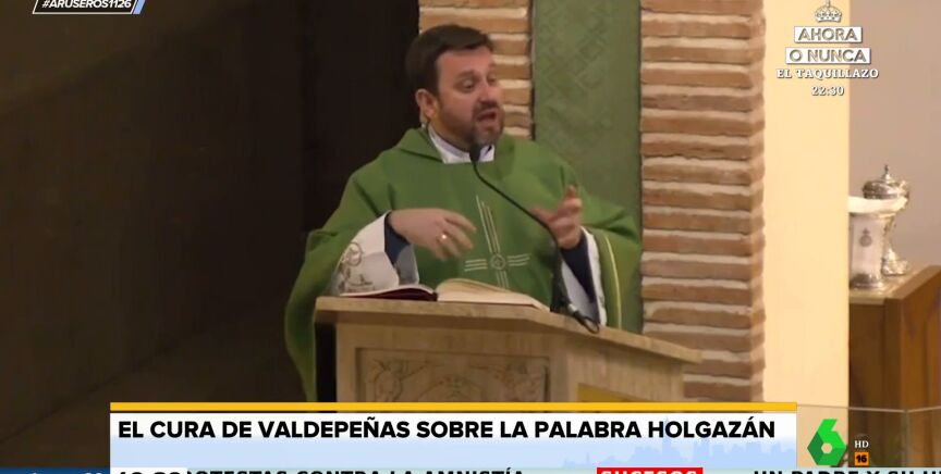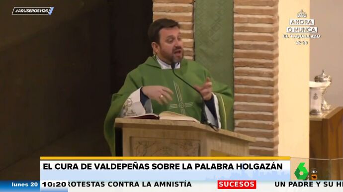 Alfonso Arús muestra el último vídeo viral del cura de Valdepeñas criticando en plena misa. Esta vez, a los vagos. "Una de las cosas que dice el Evangelio es que eres un siervo negligente y holgazán", destaca el cura de Valdepeñas, que destaca que "es una palabra muy dura".