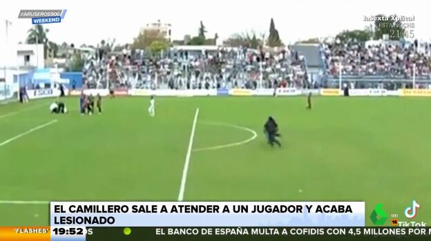 No es la primera vez que ocurre algo así, pero siempre que sucede acaba convirtiéndose en viral. Esta vez ha ocurrido en Argentina, un jugador sufre una mala caída al disputar un balón con el portero rival, en ese momento entra de urgencia la ayuda médica, pero uno de los camilleros se tropieza cayendo redondo al suelo. Arthur Arús, encargado de narrar los flashes deportivos, defendía que este vídeo se merecía el título de Arusoro. El resto de los colaboradores del programa no le dejaron solo en propuesta. Como se puede ver en el vídeo de Aruser@s Weekend, el camillero se tropieza y es incapaz de volver a levantarse. Según ha contado Arthur Arús, al final los médicos tuvieron que atenderle antes a él que al futbolista.