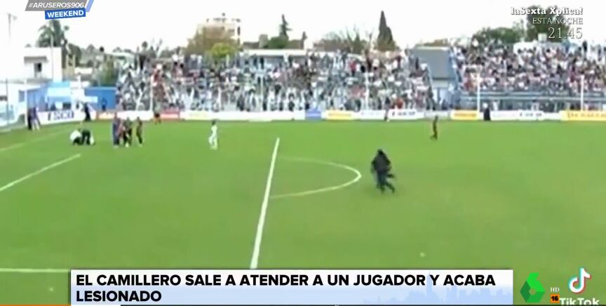 El curioso caso del camillero que sale al campo para atender a un jugador y se lesiona antes de llegar a él