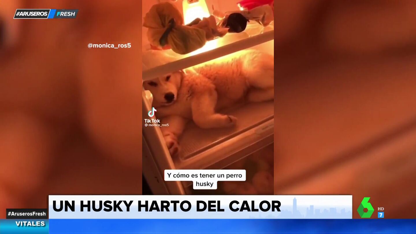 A esta conclusión llegó también el cachorro de husky que podemos ver en este vídeo de Aruser@s, que cansado de pasar calor y para sorpresa de sus dueños, ha decidido esconderse en el frigorífico.