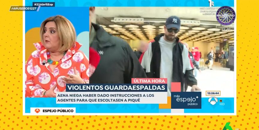 Alfonso Arús enseña en el plató de Aruser@s el "zasca" de Pilar Vidal a Gerard Piqué después de que el exfutbolista contratara a un equipo de seguridad para que los periodistas no pudieran hacerle preguntas cuando llegara al aeropuerto de Madrid con Clara Chía. Sin embargo, la seguridad se encaró con los reporteros, a los que empujó y amenazó, originando una polémica situación que puedes ver en este vídeo.