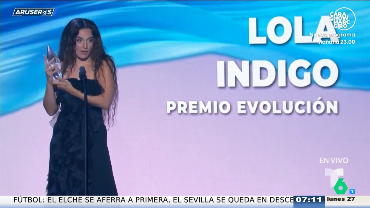 Lola Índigo ha triunfado con su actuación en los Premios Billboard Latin Women in Music 2026, donde ha interpretado dos canciones. Y es que la artista ha estrenado la canción 'Tus iniciales' y también ha cantado uno de sus grandes éxitos: 'Verde' Además, la cantante ha sido galardonada por su trayectoria con el Premio Evolución Artística, que se lo ha entregado David Bisbal. Puedes ver el momento en el vídeo principal de esta noticia.