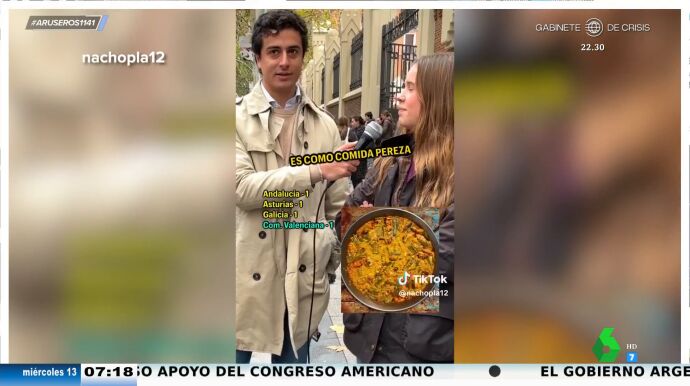 Por su parte, otro chico menciona al País Vasco, donde afirma que "solo se come sopa". "Murcia, ¿qué se come en Murcia?", se pregunta una joven mientras que otra asegura que en Extremadura no ha comido "nada bien". Por otro lado, cuando el reportero pregunta a dos amigos, ni siquiera ellos se ponen de acuerdo. Y es que mientras el primero critica al pulpo gallego, el segundo responde rápidamente: "Este tío es tonto". Puedes ver el viral al completo en el vídeo que hay sobre estas líneas.