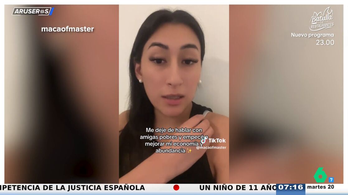 Alfonso Arús está alucinando con el vídeo viral que Hans Arús lleva hoy a Aruser@s. En él, una influencer (@macaofmaster) cuenta que ha dejado de hablar con las amigas que ella considera "pobres", que son aquellas que ganan menos de 2.000 dólares al mes.