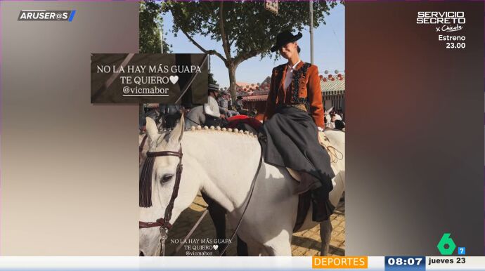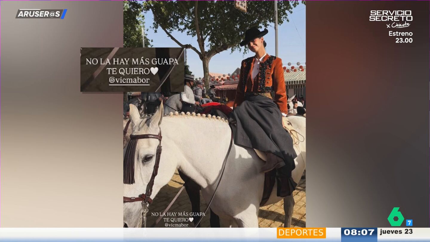 Tatiana Arús enseña en este vídeo de Aruser@s la declaración de amor de Jorge, novio de Victoria Federica, a la sobrina del rey Felipe VI. "No se puede ser más guapa, te quiero", ha escrito el empresario en sus redes sociales junto a una imagen de la influencer subida a caballo en la Feria de Sevilla.