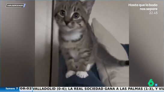 ¿Sabías que hay gatos que aprenden a ladrar? Pues sí, amigo, y además tenemos la prueba que lo demuestra. Alfonso Arús lleva a Aruser@s este vídeo viral del bebé gatito que ladra como un doberman adulto, o al menos, eso es lo que él se cree.
