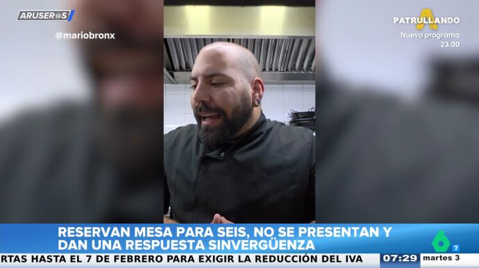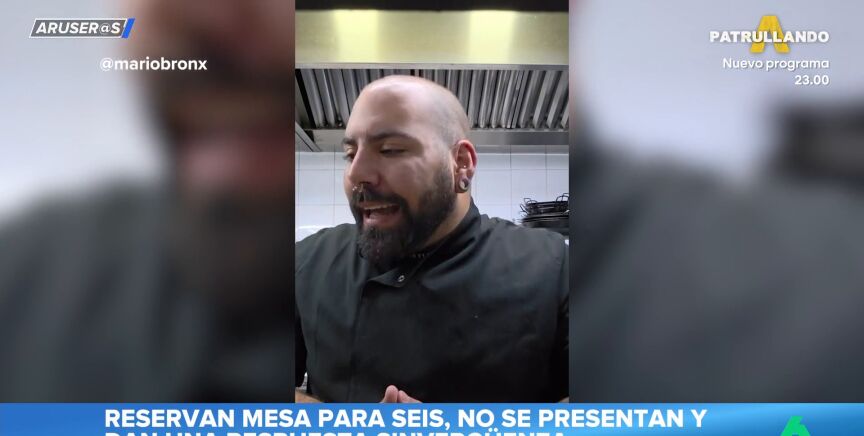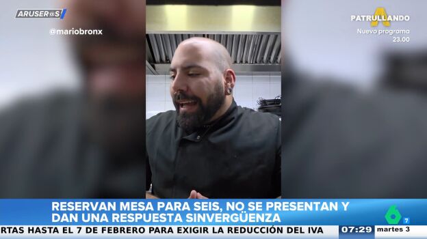 La paciencia de un hostelero tiene un límite, y así lo ha demostrado el usuario '@mariobronx', que ha compartido su enfado tras lo ocurrido en su restaurantey ha llegado hasta el plató de Aruser@s. Todo comenzó con una reserva para seis personas y un carrito, a la que finalmente nadie acudió. Sin previo aviso.