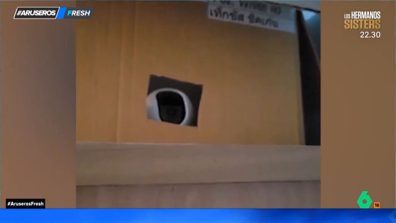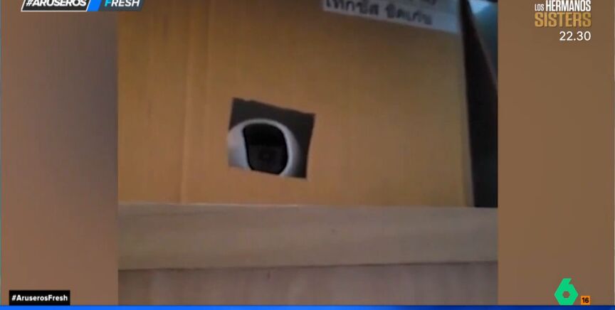 Como se puede apreciar, la instalación es bastante chapucera. "Le pilló de sorpresa la ruptura y rápido con el cúter cortó el cartoncillo para poner la cámara", teoriza María Moya en plató. Lo sorprendente, afirma Alba Sánchez, es que ella no se haya dado cuenta antes.