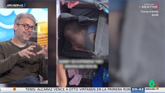 Pese a que el menor aparece cubierto parcialmente por la estructura del carrito y en silencio, les acaban pillando. Así lo explica en el plató el presentador del programa. "¿Qué ejemplo le estás dando a tu hijo?", alucina Óscar Broc, tras ver "la táctica" utilizada.