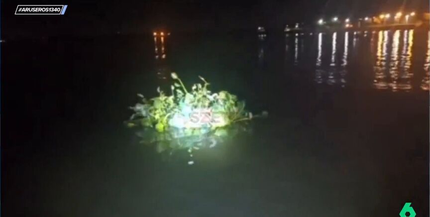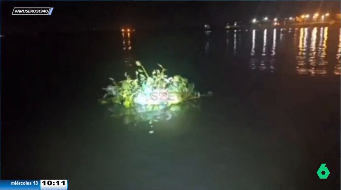 Alfonso Arús presenta un surrealista viral que ha tenido lugar en Argentina. "¡Atención!", exclama el presentador, para que sus colaboradores no pierdan detalle de la historia. "Han detenido a un hombre que se ha disfrazado de planta acuática para hacer contrabando de cigarrillos", explica Alfonso, que muestra las imágenes del momento en el que detienen al señor de noche flotando en el agua.