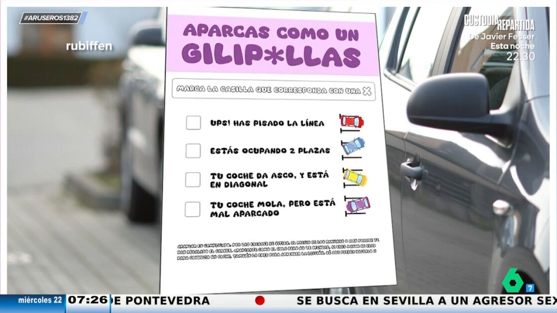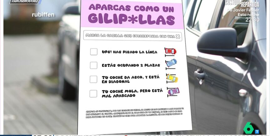 Cuidado, porque a partir de ahora, si aparcas como un 'gilipó' puedes llevarte alguna que otra sorpresita. Y es que, el tiktoker @rubiffen se ha dedicado a diseñar una pegatina dedicada a todos aquellos que se creen que los aparcamientos son de su propiedad y aparcan ocupando dos plazas, pisan la línea o, directamente, donde les da la gana.