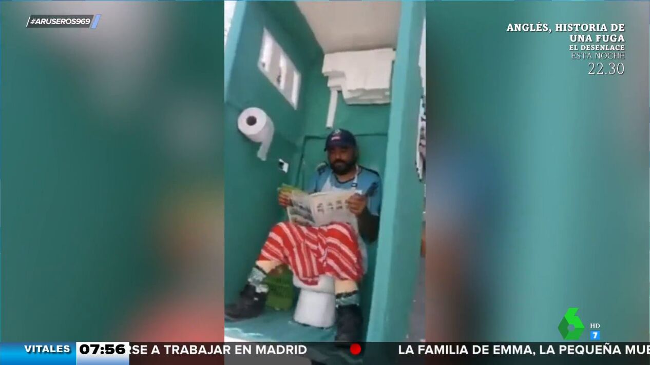 "Requiere una atención especial porque no es tan fácil saber cómo lo ha hecho", comenta Alfonso Arús mientras da paso a este vídeo viral en el que descubrimos uno de los disfraces más originales y divertidos de este Carnaval: el de lavabo público portátil.