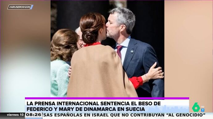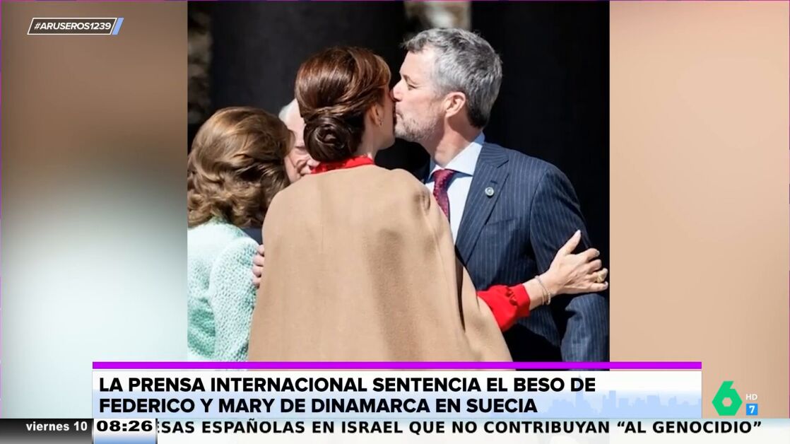 "Mi pareja me da un beso de esta guisa y... la pasión brilla por su ausencia", afirma Tatiana Arús al ver estas imágenes de Federico y Mary de Dinamarca que, según destaca Alfonso Arús, demuestran que no tienen feeling".