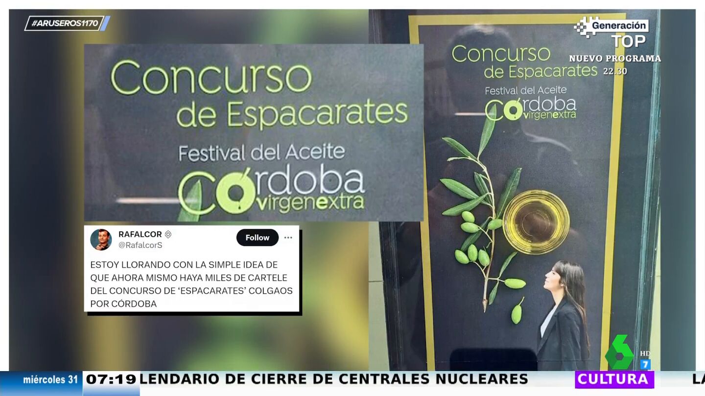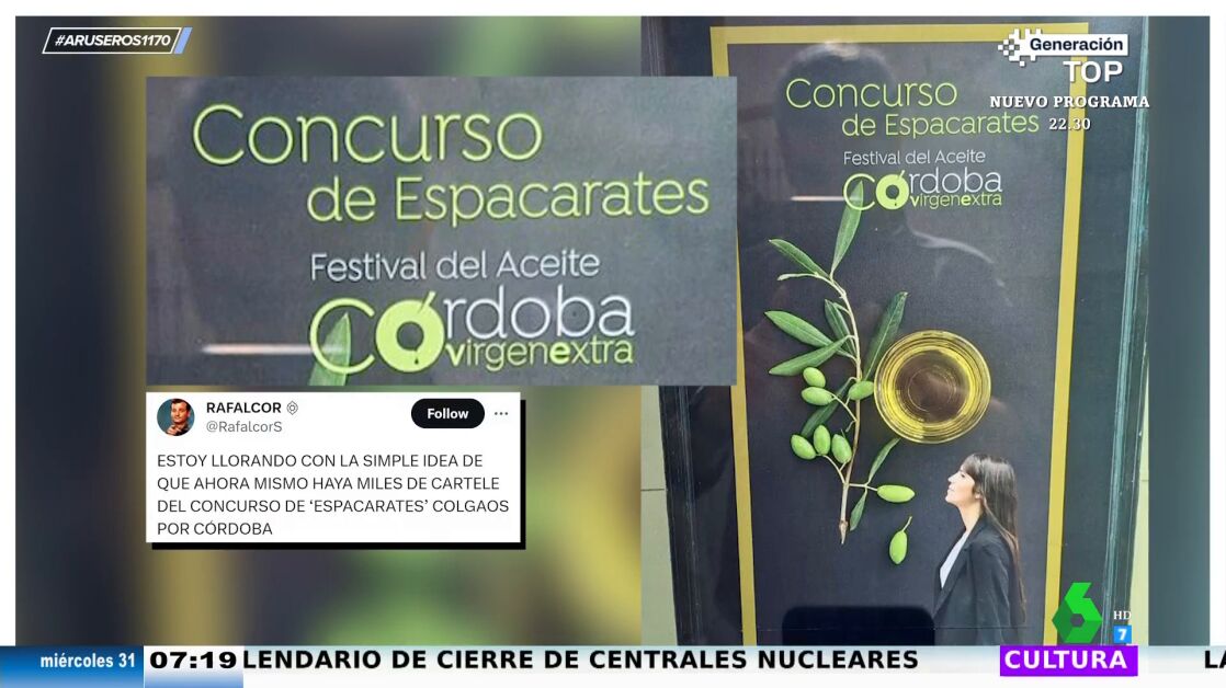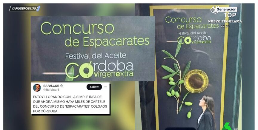 El festival del aceite de oliva virgen extra de Córdoba celebra su concurso de escaparates... o, mejor dicho, de 'espacarates'. Sí, has leído bien. De 'espacarates'. Al menos, eso es lo que asegura el cartel que lo anuncia, que puede encontrarse en cientos de enclaves en toda la provincia.