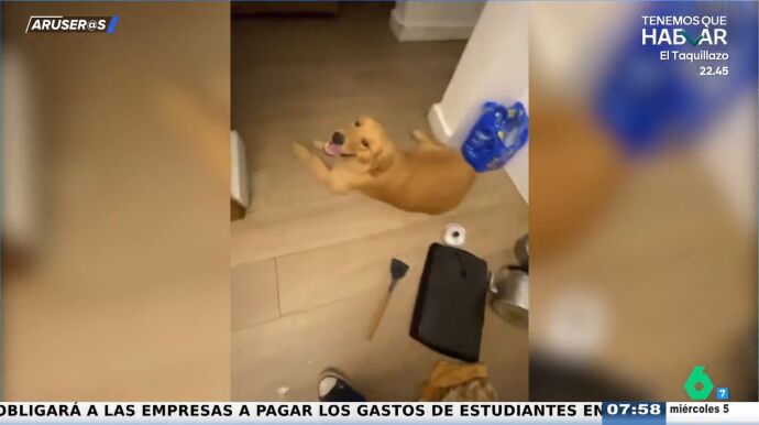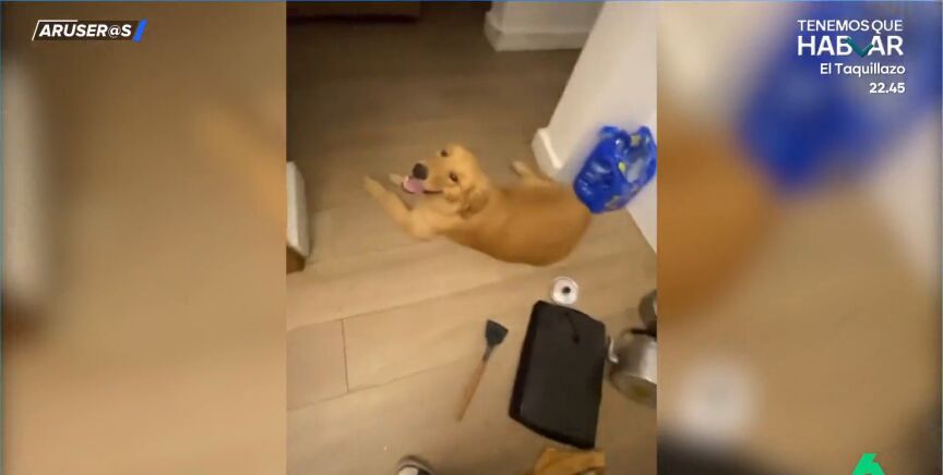 Los Golden Retriever vuelven a conquistar el plató de Aruser@s: están los perritos que tienen tiernos gestos hasta los que hacen auténticas gamberradas. Como es el caso del can del vídeo sobre estas líneas.
