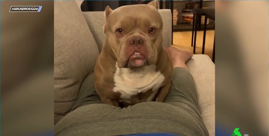 El can que tiene la desgracia de protagonizar estas imágenes se acaba de comer uno de los gases de su persona favorita y su cara al hacerlo no tiene precio.