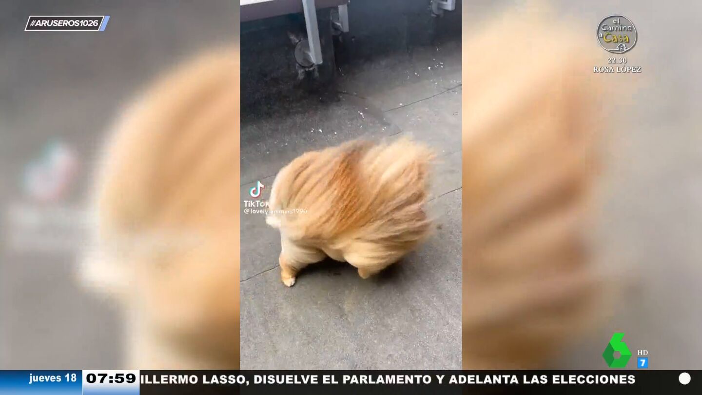 "Ellos son los primeros en despeinarse cuando sopla el viento", asegura Alfonso Arús mientras muestra este vídeo viral a sus colaboradores. En él, un pequeño perritocon gran melena se pelea contra el viento que mueve su pelo de tal manera que le hace parecer un erizo, tal y como apunta Alba Sánchez.