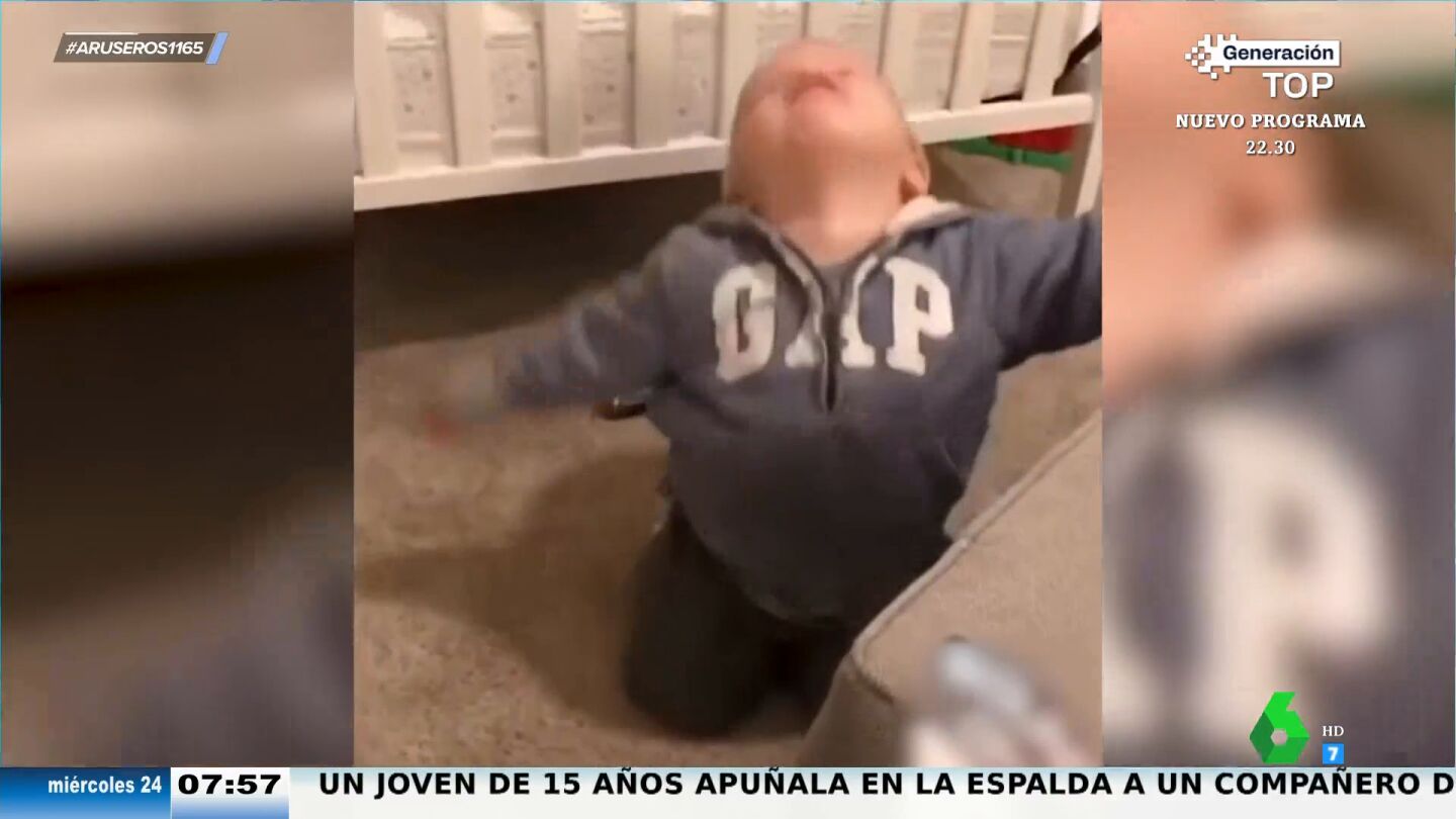 En este vídeo viral emitido en Aruser@s somos testigos del divertido juego que padre e hijo comparten en el salón de casa. Como si fueran un soldado imperial y un rebelde, ambos luchan al estilo 'Star Wars', con espada láser incluida, que ni Luke Skywalker contra Darth Vader.