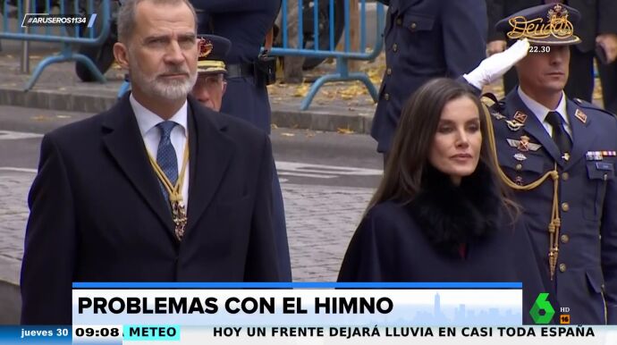 "Sonó un remix particular y alguna nota que desafinaba", describe Alfonso Arús este tremendo momentazo del arranque de la XV Legislatura . La banda tocaba el himno de España con mucho ánimo, pero poco acierto, y así se escuchó en directo para toda España.