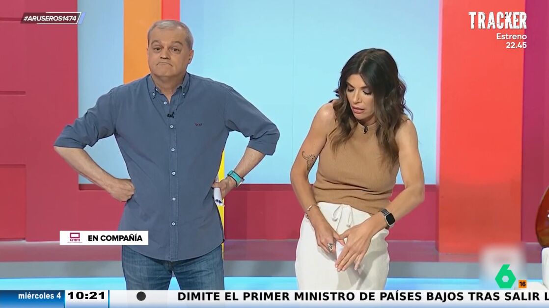 "Señores, siéntense para hacer pipí". Es la recomendación que Gloria Santoro ofrece a los hombres espectadores de 'En compañía', el programa que presenta junto a Ramón García en Castilla-La Mancha TV. "No pasa nada y lo recomiendan los urólogos", añade, tal y como podemos escuchar en este fragmento que rescata Aruser@s para su sección de los 'zascas'.