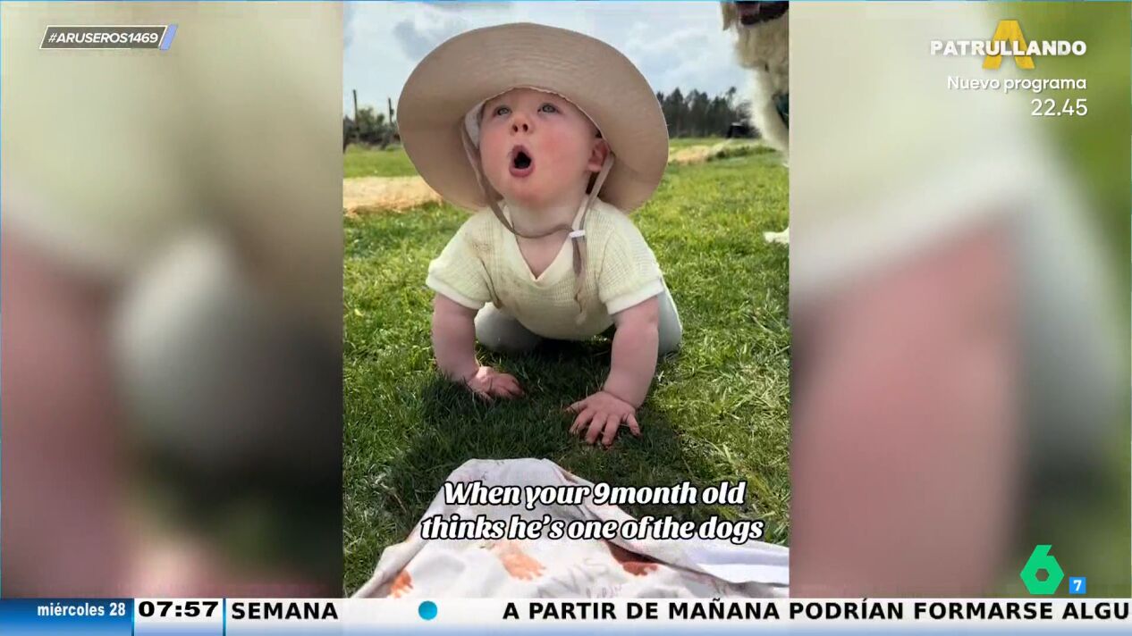 Este vídeo viral pertenece a una de las categorías favoritas de nuestros amigos de Aruser@s: bebés y perritos. Así de adorable es este pequeño que ladra y anda a cuatro patas como sus mejores amigos peludos.