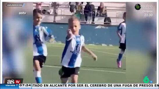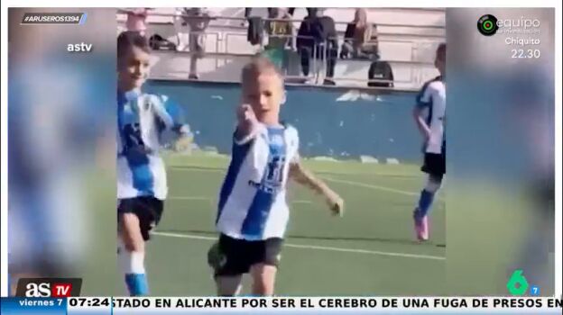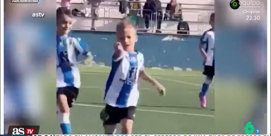 El niño que protagoniza este vídeo viral de @astv acaba de marcar un golazo en el partido de fútbol que disputa con sus compañeros. Como vemos en estas imágenes emitidas en Aruser@s, el pequeño corre por el campo y apunta, aparentemente, a quien está grabando esta escena, que no es otra persona que su madre.