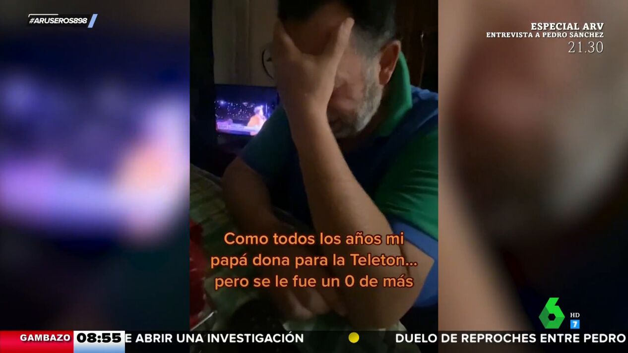 El protagonista de este vídeo se equivocó al rellenar la casilla de la cuantía de su donación y sin querer añadió un cero de más. Su reacción fue compartida por su hija en redes y la sociedad respondió a su solidario gesto.