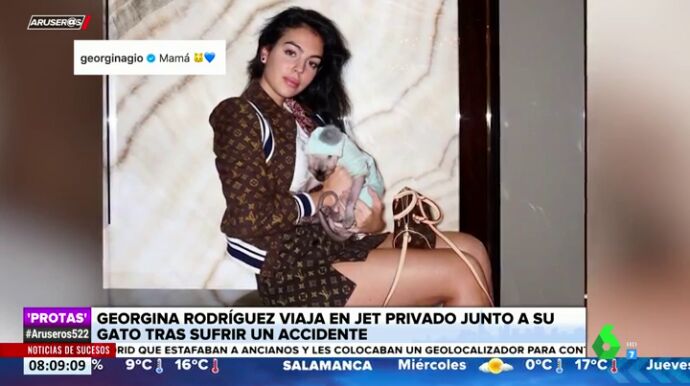 El gato de Georgina Rodríguez viaja en jet privado tras sufrir un accidente en Italia