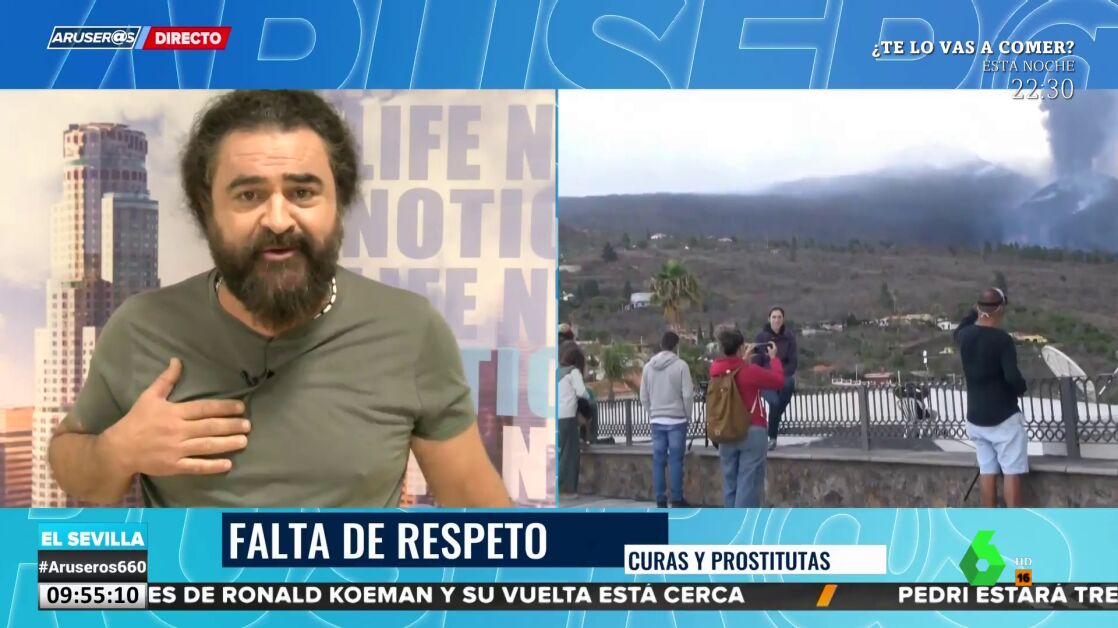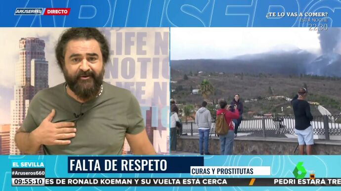 Hace un mes que entró el volcán de La Palma en erupción y El Sevilla asegura no haber hecho ninguna broma sobre el tema porque le parece "una falta de respeto". Así mismo define el titular con el que un medio ha hablado sobre la evacuación del prostíbulo Las Martelas en La Palma.