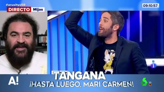 Miguel Ángel Rodríguez, El Sevilla, analiza la espantada de Tangana en Operación Triunfo. El artista protagonizó una polémica escena al dejar plantado al presentador Robero Leal tras su actuación en el programa. El colaborador de Arusitys analiza el desplante y aplaude la reacción del conductor del formato.
