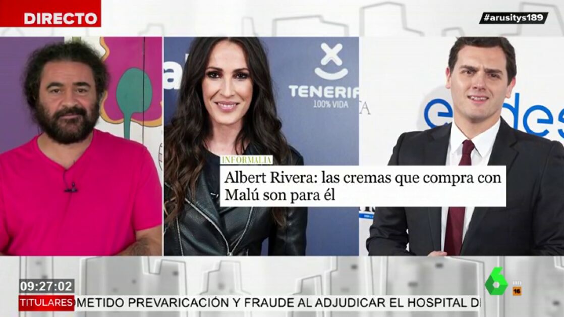 Alfonso Arús pregunta a El Sevilla su opinión sobre las primeras imágenes de Albert Rivera y Malú. La pareja aparece junta en un centro comercial comprando cremas para el político, algo que llama la atención del colaborador de Arusitys.