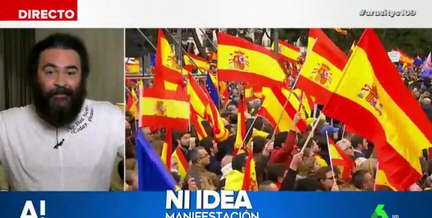 El colaborador habla, sobre todo, sobre el baile de cifras que dividen a la derecha y la izquierda: 45.000 asistentes, según delegación del Gobierno, y 200, según los organizadores.
