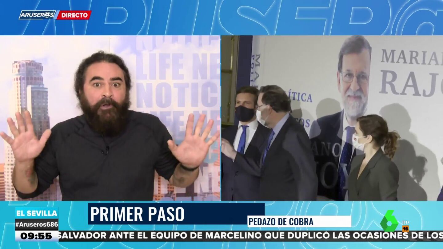 El humorista cree que sí que hubo cobra de Isabel Díaz Ayuso a Mariano Rajoy para no estar al lado de Pablo Casado en la foto: "Se está hablando más de la cobra que de la presentación del libro", bromea El Sevilla.