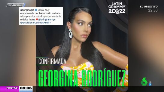 "La propia academia ha confirmado la participación de Georgina Rodríguez,parejadeCristiano Ronaldo, en los Latin Grammy y, por lo visto, entregará un importante premio durante la ceremonia", informa Tatiana Arús.
