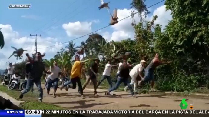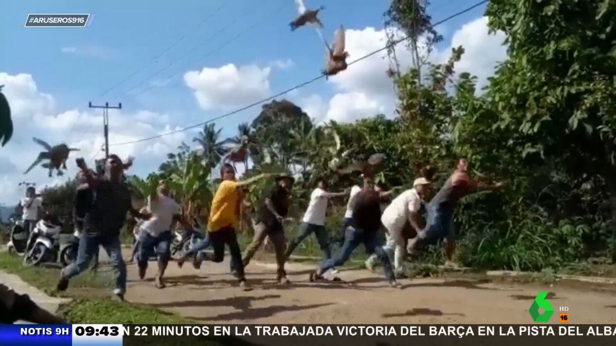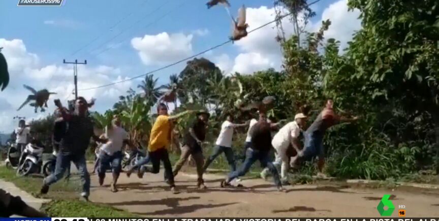 Esta carrera de patos voladores se celebró ayer en Indonesia y para Alfonso Arús es, sin duda, uno de los acontecimientos del año. "Ya en el momento del lanzamiento comienza el espectáculo", comenta con entusiasmo el presentador de Aruser@s mientras presenta este vídeo viral a sus espectadores y colaboradores.