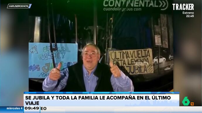 El viral llega desde Argentina y en el vídeo sobre estas líneas podemos ver cómo sus seres queridos aplauden y animan al señor mientras realiza el viaje final. "Esta leyenda se jubila", sostiene un cartel que han decidido poner frente al bus.