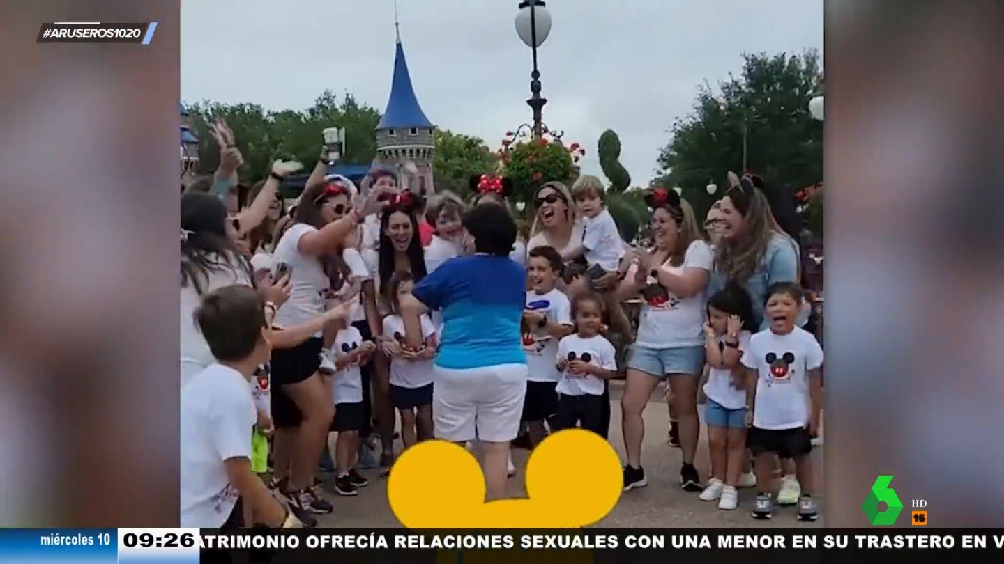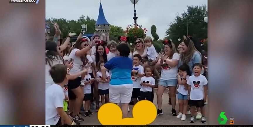 "¡Oh, qué bonito este vídeo! Me gustaría una sorpresa así", exclama Alfonso Arús ante sus colaboradores antes de dar paso a estas emotivas imágenes. Varias generaciones de exalumnas de un colegio se han reunido para hacer un emotivo homenaje a su profesora. Su regalo no ha sido otro quellevarla a Disneylandpara reunirse con ella a los pies del mágico castillo.