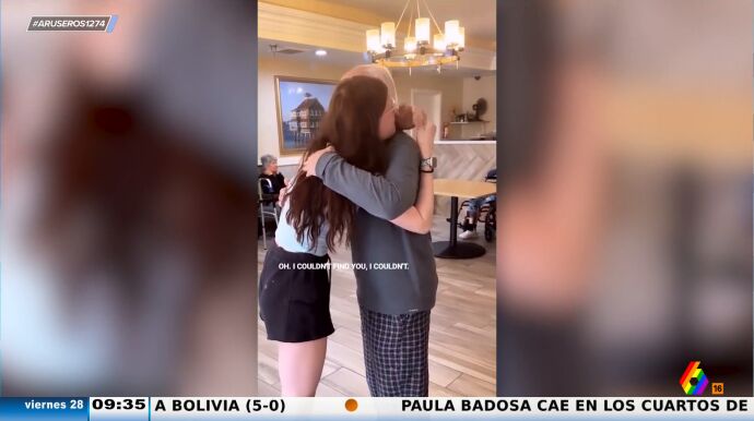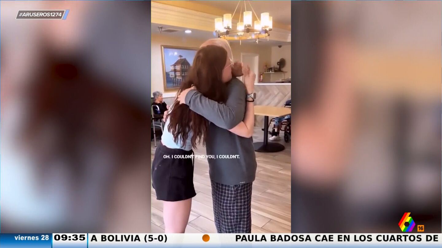 Alfonso Arús reproduce en el plató de Aruser@s un vídeo muy emotivo. Un abuelo reconoce a su nieta cinco años después. Él no la reconocía porque sufre una demencia severa, pero por un instante tiene un flash de lucidez y reconoce a la persona que tiene delante. La joven se emociona mucho porque después de cinco años sin reconocerla, no esperaba que esto pudiese ocurrir.