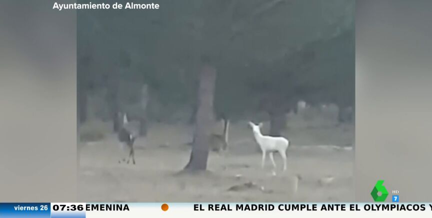 "Es una rareza absoluta del mundo animal que ha sido avistada en el Parque Nacional de Doñana", comenta Alfonso Arús en Aruser@s mientras en pantalla se muestran las imágenes de un ciervo albino que ha aparecido junto a una manada en el término municipal de Almonte (Huelva).