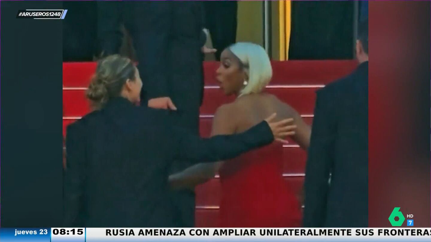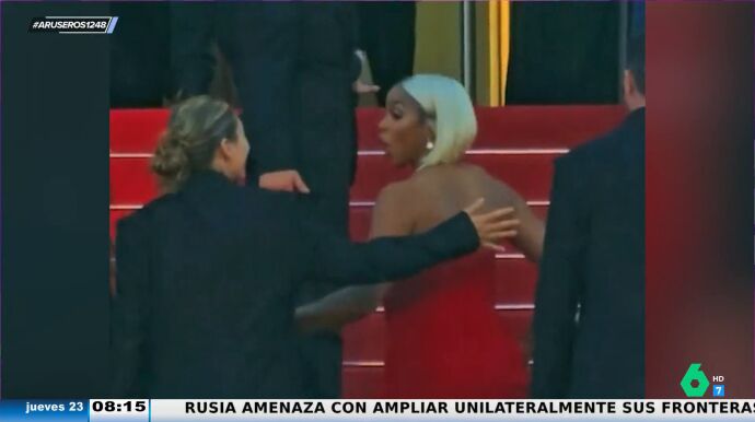 Por otro lado, Alfonso Arús enseña en el vídeo principal de esta noticia cómo la cantante de Kelly Rowland, miembro de Destiny's Child, se ha encarado contra un miembro de seguridad del certamen en plena alfombra roja. "Parece ser que ella estaba saludando a los presentes como una auténtica diva y no le debió de gustar que igual le estaba metiendo prisa ese miembro de seguridad", detalla Tatiana Arús.