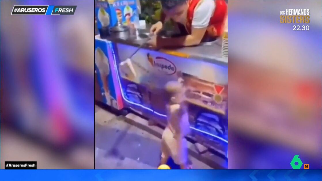 En las imágenes vemos como un niño llega al puesto de helados y pide su polo favorito. El heladero coloca la bola sobre el cucurucho y con una especie de varilla de metal se lo ofrece al pequeño. El heladero comienza entonces con su 'jugarreta' para ver si el pequeño logra atrapar el helado.