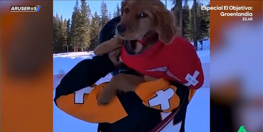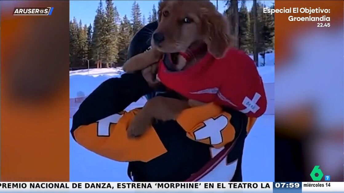 El pequeño Benji aún no sabe que se ha convertido en toda una sensación en las redes sociales, pero su vídeo ya ha conquistado a miles de personas en todo el mundo. Aruser@s recoge este tierno momento en el que el cachorro de Golden Retriever es llevado a cuestas por su cuidador mientras descienden juntos por una colina cubierta de nieve, generando sonrisas y suspiros entre quienes lo ven.
