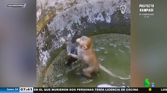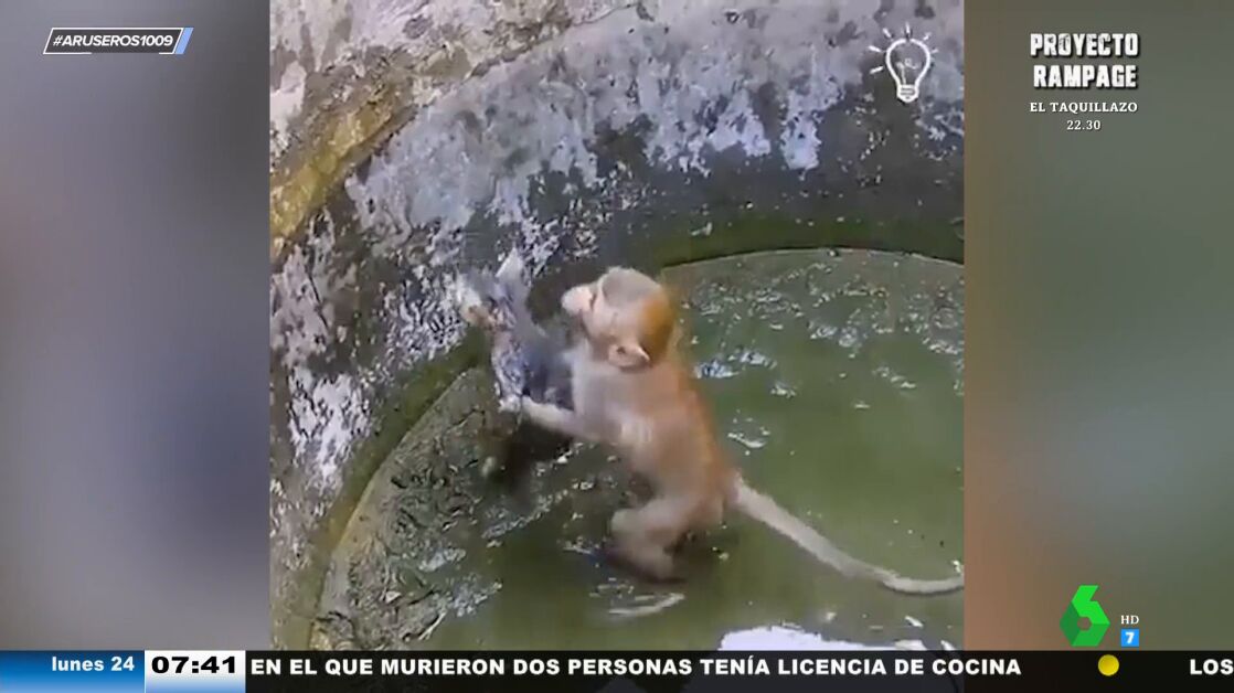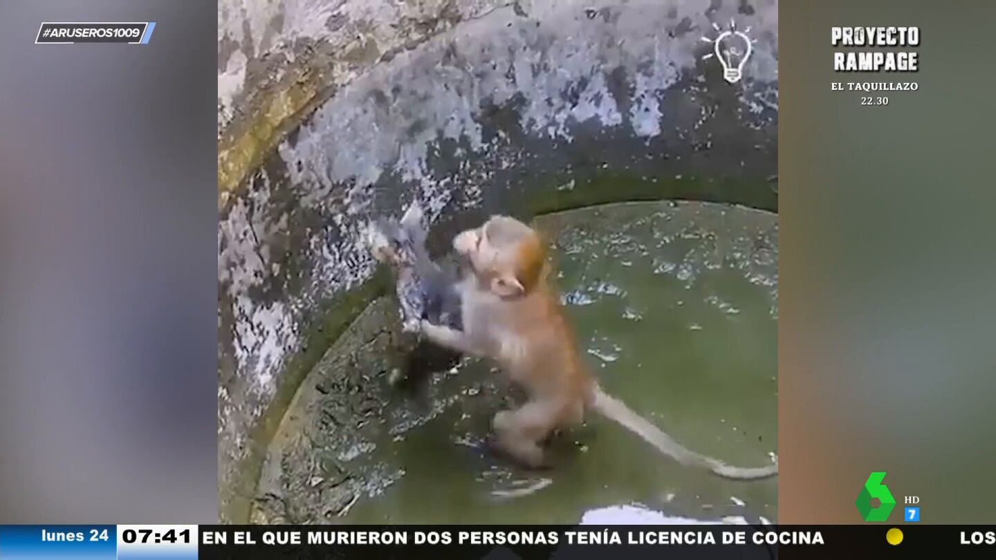 El entrañable vídeo de un mono intentando salvar a un gatito atrapado en un pozo