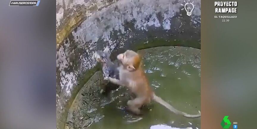 "Hay que reconocer que cuando son adorables también hay que remarcarlo", afirma Alfonso Arús mientras da paso a este vídeo en el que se muestra la curiosa actitud de un mono, que intenta salvar con todas sus fuerzas e ideas a un gatito que se ha quedado atrapado en un pozo. Él solo no lo consigue, pero con la ayuda de una mujer que llega más tarde, ambos logran salir sanos y salvos.