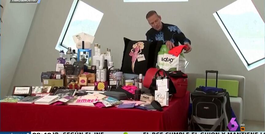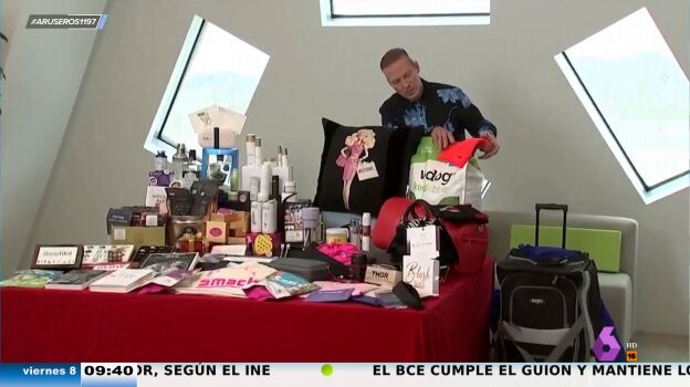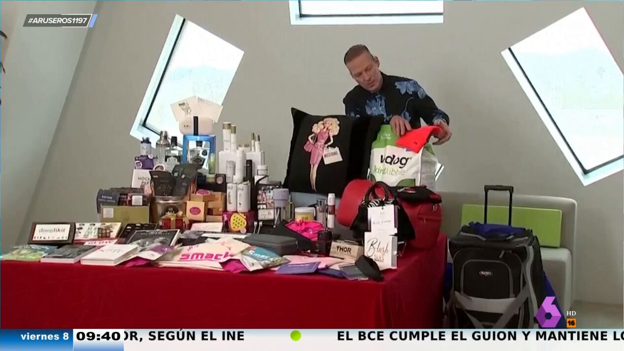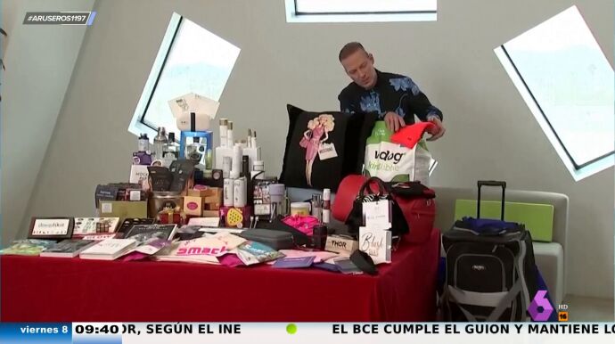 Su contenido está valorado en más de 100.000 euros. "Podemos encontrar desde cremas faciales que cuestan unos 500 euros a grandes lotes de comida para perro. Tenéis también una parrilla portátil con infrarrojos, que cuesta 1.300 euros; un cubo de Rubik; unas camisetas interiores; todo tipo de menaje para el hogar; fundas de cojines; colutorio dental, y algunos viajes, como sería el apartamento en Suiza para diez personas o un spa en California", cuenta Tatiana Arús.