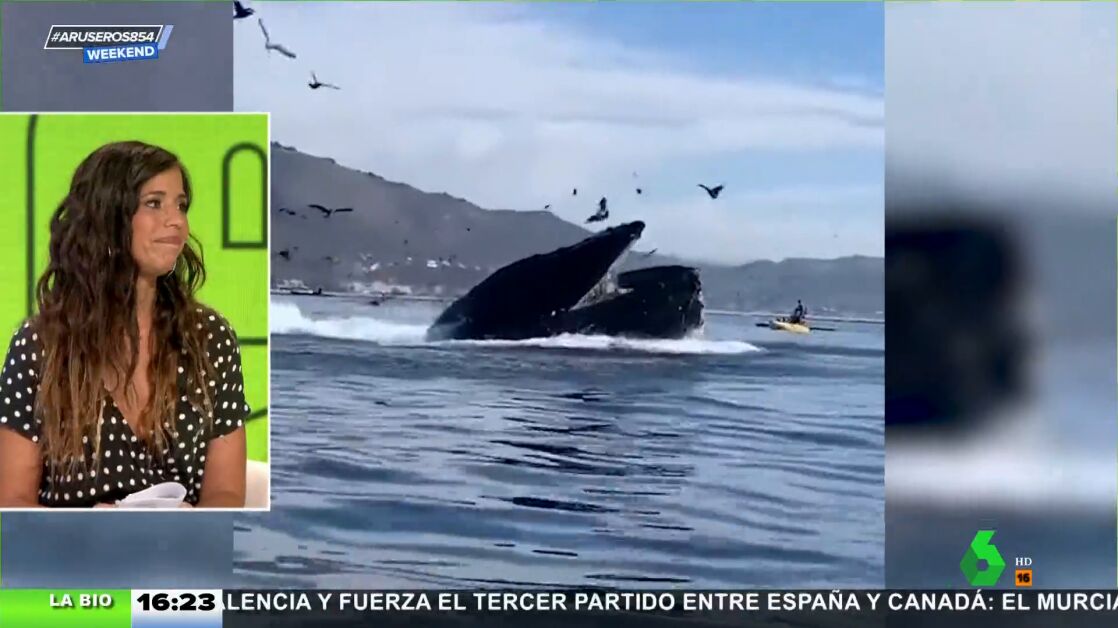 Si alguna vez tienes la mala suerte de encontrarte dentro de la boca de una ballena, tranquilidad, no te va a dejar entrar a su tripa y te escupirá. Palabra de la bióloga Evelyn Segura.