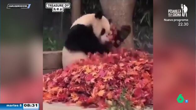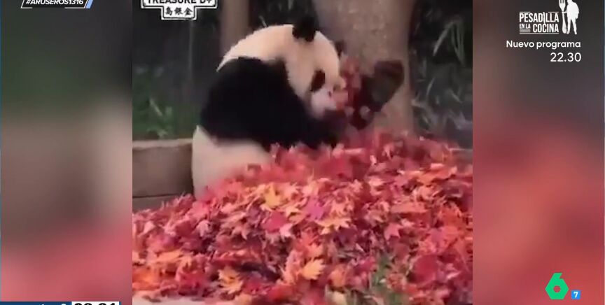 Plena felicidad, es lo que ha sentido el panda que sale en el viral que acompaña esta noticia, al ver que uno de los empleados del zoológico donde está le ha llevado sus hojas rojas favoritas. Ha ocurrido en Japón, y como comenta Alfonso Arús lo han hecho "para levantarle el animo porque estaba algo triste".