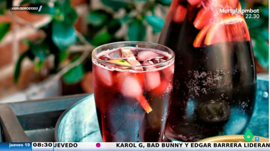 "No acertaríais nunca", avisa el presentador a sus compañeros. La primera es el gazpacho andaluz y la segunda es el tinto de verano con soda. "Aquí estamos discutiendo que si la paella, que si el cocido y al final resulta que los americanos dicen gazpacho o tinto de verano", comenta Alfonso Arús.